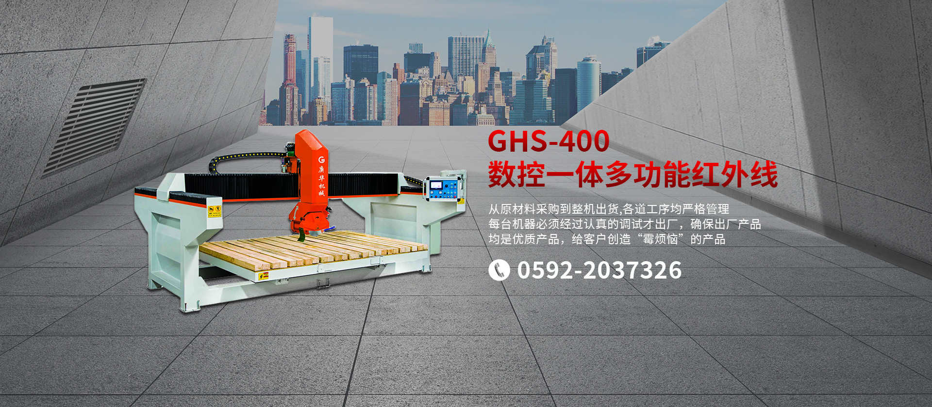 公司生產(chǎn)適用于大理石、花崗巖、砂巖、石灰?guī)r、洞石、玉石等各種石材的機(jī)械設(shè)備。主要產(chǎn)品有GHHW系列紅外線(xiàn)橋式切邊機(jī)、GHQQ系列橋式多片組合鋸石機(jī)、各種手動(dòng)/自動(dòng)/單頭/多頭板材磨拋機(jī)、以及各種異形加工設(shè)備。公司長(zhǎng)期注重品質(zhì)管理,以質(zhì)量為中心,從原材料采購(gòu)到整機(jī)出貨,各道工序均嚴(yán)格管理,每臺(tái)機(jī)器必須經(jīng)過(guò)認(rèn)真的調(diào)試才出廠(chǎng),確保出廠(chǎng)產(chǎn)品均是優(yōu)質(zhì)產(chǎn)品,給客戶(hù)創(chuàng)造“零煩惱”的產(chǎn)品。